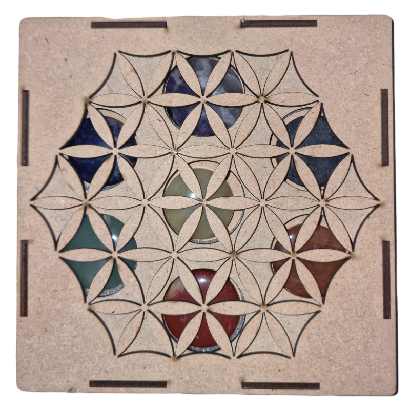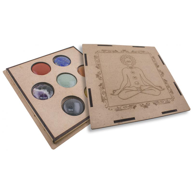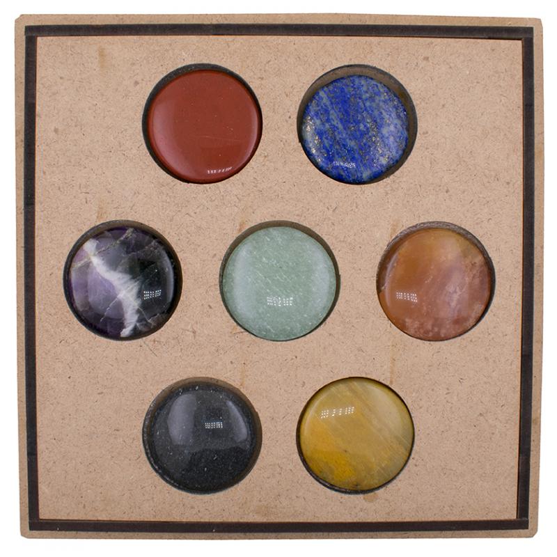 SET DE 7 COLGANTE CORAZÓN MINERAL CHAKRAS GRABADOS REF 890